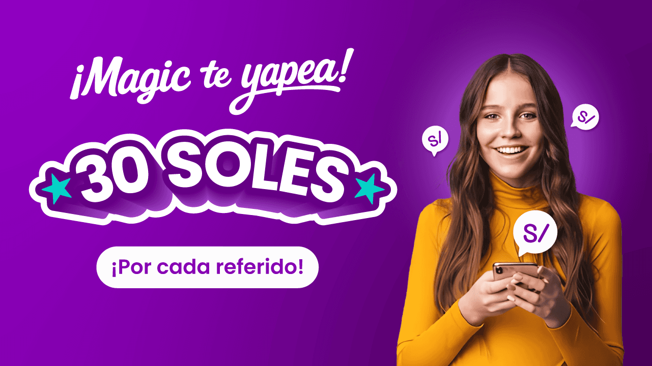 Promoción válida solo para clientes activos con pagos al día. Bono de S/ 30 por cada referido nuevo que contrate y mantenga el servicio activo un mínimo de 30 días. El bono será pagado en un periodo máximo de 15 días. No válido para anteriores clientes que hayan contratado el servicio anteriormente. Máximo 5 referidos por cliente. Internet Magic puede modificar o cancelar la promoción sin previo aviso.